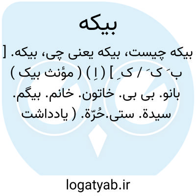بیکه. [ ب َ ک َ / ک ِ ] ( اِ ) ( مؤنث بیک ) بانو. بی بی. خاتون. خانم. بیگم. سیدة. ستی.حُرّة. ( یادداشت مؤلف ). رجوع به بیک و بیکم شود.