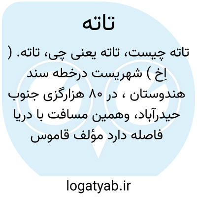 تاته. ( اِخ ) شهریست درخطه سند هندوستان، در 80 هزارگزی جنوب حیدرآباد، وهمین مسافت با دریا فاصله دارد مؤلف قاموس الاعلام ترکی آرد این شهر دارای 15000 تن نفوس است و چند کارخانه منسوجات ابریشمی و نخی دارد در زمانهای پیش شهرمهمی بود و تجارت پر رونقی داشته که بعدها تنزل کردو محتملا همان شهر قدیمی «پتاله » است، و در سال 1555م. بوسیله پرتقالیها این شهر ضبط و ویران گردید.