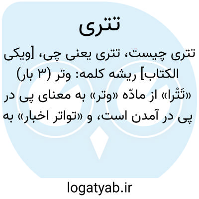 «تَتْرا» از مادّه «وتر» به معنای پی در پی در آمدن است، و «تواتر اخبار» به معنای خبرهایی است که یکی بعد از دیگری می رسد، و از مجموعه آنها انسان یقین پیدا می کند. این ماده در اصل از «وتر» به معنای «زه کمان» گرفته شده است; چرا که «زه» به کمان چسبیده و پشت سر آن قرار گرفته است و دو سر کمان را به هم نزدیک می کند.