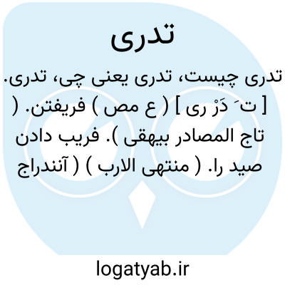 تدری. [ ت َ دَرْ ری ] ( ع مص ) فریفتن. ( تاج المصادر بیهقی ). فریب دادن صید را. ( منتهی الارب ) ( آنندراج ) ( المنجد ) ( اقرب الموارد ). فریب دادن شکار را. ( ناظم الاطباء ). || موی فروکردن زن. ( تاج المصادر بیهقی ). شانه کردن زن موی را. ( منتهی الارب ) ( آنندراج ) ( ناظم الاطباء ).