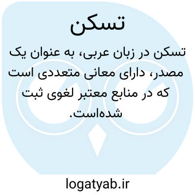 واژهٔ تَسَکُّن در زبان عربی، به عنوان یک مصدر، دارای معانی متعددی است که در منابع معتبر لغوی ثبت شدهاست. بر اساس کتاب تاجالمصادر بیهقی و نیز فرهنگهایی مانند منتهیالارب، آنندراج و ناظمالاطباء، این واژه به معنای بیچاره شدن، درویش شدن و مسکین شدن است. همچنین در متناللغة و اقربالموارد نیز بر همین معانی تأکید شدهاست. در معنایی دیگر، تَسَکُّن به مانند مسکین گشتن تعبیر شدهاست. برای نمونه، در عبارت عربی تَسَکُّنُ الرَّجُلِ زمانی به کار میرود که فردی خود را شبیه به افراد بینوا و مسکین نشان دهد. این مفهوم ارتباط نزدیکی با واژهٔ تَمَسْکُن دارد که به همین معنی است و در منابع لغوی به آن ارجاع داده میشود. علاوه بر این، در فرهنگ المنجد معنای دیگری برای تَسَکُّن ذکر شدهاست که عبارت است از مطمئن شدن، آرامگرفتن و وقار یافتن. این معنا نشاندهندهٔ گسترهٔ معنایی این واژه است که از یک سو به فقر و درویشی اشاره دارد و از سوی دیگر به آرامش و وقار.