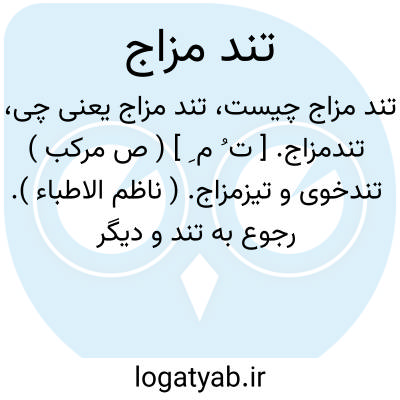 تندمزاج. [ ت ُ م ِ ] ( ص مرکب ) تندخوی و تیزمزاج. ( ناظم الاطباء ). رجوع به تند و دیگر ترکیبهای آن شود.
