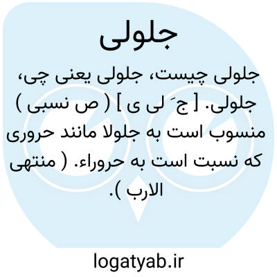 جلولی. [ ج َ لی ی ] ( ص نسبی ) منسوب است به جلولا مانند حروری که نسبت است به حروراء. ( منتهی الارب ).