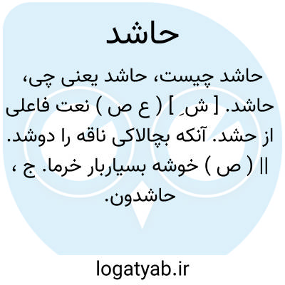 حاشد. [ ش ِ ] ( ع ص ) نعت فاعلی از حشد. آنکه بچالاکی ناقه را دوشد. || ( ص ) خوشه بسیاربار خرما. ج، حاشدون. حاشدین. حُشّد.