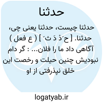حدثنا. [ ح َدْ دَ ث َ ] ( ع فعل ) آگاهی داد ما را فلان...:
