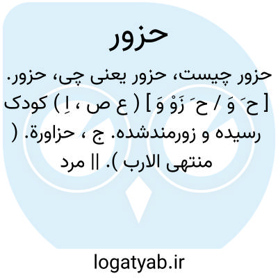 حزور. [ ح َ وَ / ح َ زَوْ وَ ] ( ع ص، اِ ) کودک رسیده و زورمندشده. ج، حزاورة. ( منتهی الارب ). || مرد ضعیف. ( منتهی الارب ). || مرد قوی. لغت از اضداد است. ( منتهی الارب ). کلندره. ( در سه نسخه خطی مهذب الاسماء ).