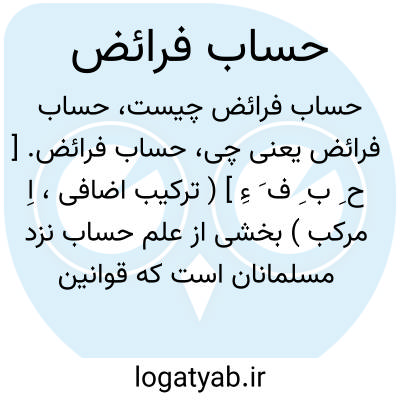 حساب فرائض. [ ح ِ ب ِ ف َ ءِ ] ( ترکیب اضافی، اِ مرکب ) بخشی از علم حساب نزد مسلمانان است که قوانین تقسیم ترکه مردگان در آن جمع است و چلبی شش کتاب در این موضوع به ابن ثابت و ابوالقاسم حوفی و ابن النمر و جعدی و هنودی و امام الحرمین نسبت داده است. ( از کشف الظنون ).