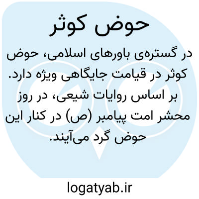 در گسترهی باورهای اسلامی، حوض کوثر در قیامت جایگاهی ویژه دارد. بر اساس روایات شیعی، در روز محشر امت پیامبر (ص) در کنار این حوض گرد میآیند. پس از آن که پرچم امام علی (ع) آشکار میشود، حضرت رسول از امت خویش دربارهی چگونگی پیروی از «ثقلین» (قرآن و عترت) میپرسند. آن گاه که پاسخ امت بر تصدیق قرآن و دوستی و اطاعت از عترت طاهرین باشد، پیامبر (ص) آنان را با بشارت و شادکامی، به نوشیدن از حوض کوثر فرمان میدهند. این حوض، نمادی از سیراب شدن مؤمنان از زلال هدایت و ولایت در سرای آخرت است.