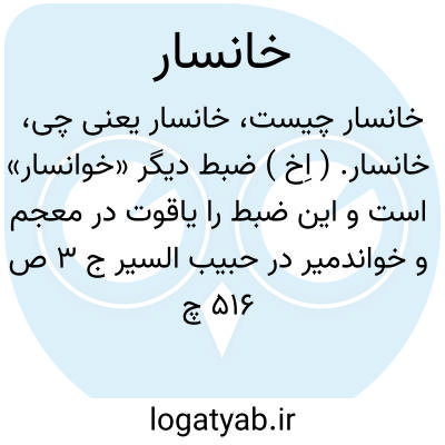 خانسار. ( اِخ ) ضبط دیگر «خوانسار» است و این ضبط را یاقوت در معجم و خواندمیر در حبیب السیر ج 3 ص 516 چ کتابخانه خیام آورده: «خانسار از اعمال جربادقان ( گلپایگان )» و یاقوت آورد: احمدبن حسن بن احمدبن علی بن حصیب مکنی به ابوسعد خانساری منسوب به این ناحیه ( خانسار ) است. او از ابی طاهر محمدبن احمدبن عبدالرحیم و جز او حدیث شنید. ( از معجم البلدان یاقوت حموی ).