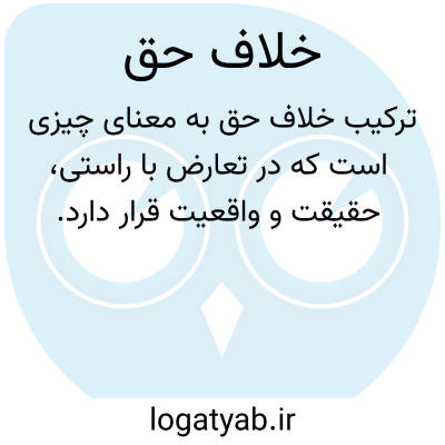 ترکیب خلافِ حق به معنای چیزی است که در تعارض با راستی، حقیقت و واقعیت قرار دارد. این اصطلاح در زبان فارسی، به‌ویژه در متون حقوقی، اخلاقی و ادبی، برای توصیف گفتار، کردار یا داوری‌ای به کار می‌رود که با حقیقت عینی یا اصول پذیرفته‌شده‌ی عقلانی و اخلاقی هم‌خوانی ندارد. بر اساس منابع لغوی، از جمله ناظم‌الاطباء، «خلافِ حق» نقطه‌ی مقابل راستی و حقیقت شمرده می‌شود و بار معنایی منفی روشنی دارد.