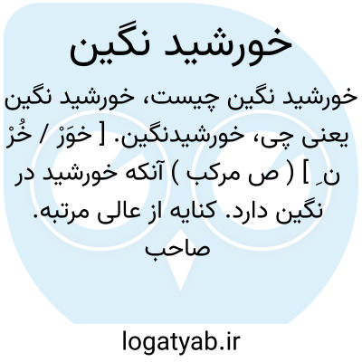 خورشیدنگین. [ خوَرْ / خُرْ ن ِ ] ( ص مرکب ) آنکه خورشید در نگین دارد. کنایه از عالی مرتبه. صاحب جاه. شکوهمند. باجلالت. باهیبت: