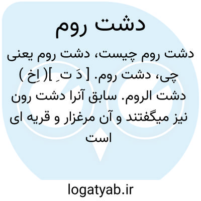 دشت روم. [ دَ ت ِ ]( اِخ ) دشت الروم. سابق آنرا دشت رون نیز میگفتند و آن مرغزار و قریه ای است در بلوک ممسنی ( شولستان سابق )، و این بلوک واقع است در مابین مغرب و شمال شیراز و قصبه آن موسوم است به فهلیان که تا شیراز قریب بیست و یک فرسخ مسافت دارد، و از دشت روم تا مابین هفت فرسخ است. رجوع به فارسنامه ابن البلخی ص 101 و 102و نزهة القلوب مستوفی ص 134 و سفرنامه ابن بطوطة چ مصر ج 1 ص 127 و حافظ چ قزوینی ص قیط شود: