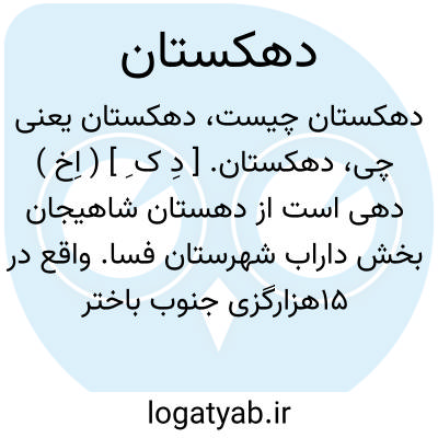 دهکستان. [ دِ ک ِ ] ( اِخ ) دهی است از دهستان شاهیجان بخش داراب شهرستان فسا. واقع در 15هزارگزی جنوب باختر داراب. سکنه آن 174 تن. آب آن از چشمه تأمین می شود. ( از فرهنگ جغرافیایی ایران ج 7 ).