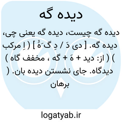 دیده گه. [ دی دَ / دِ گ َهَْ ] ( اِ مرکب ) ( از: دید + هَ + گه، مخفف گاه ) دیدگاه. جای نشستن دیده بان. ( برهان ). دیدگاه. ( شرفنامه منیری ). رصدگاه. مرصاد. مرصد: