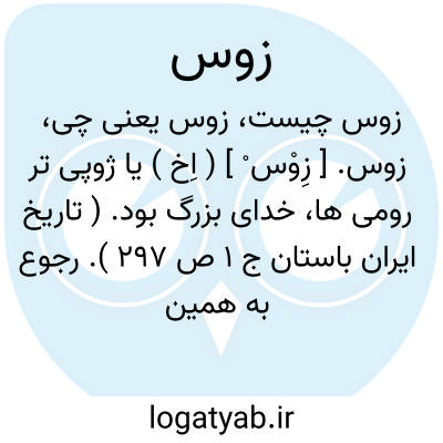 زوس. [ زِوْس ْ ] ( اِخ ) یا ژوپی تر رومی ها، خدای بزرگ بود. ( تاریخ ایران باستان ج 1 ص 297 ). رجوع به همین کتاب ص 226 و 496 و 557 و 558 و 513 و 579 و ج 3 ص 2089 و 2103 و زئوس و زواس و ژوپیتر شود.