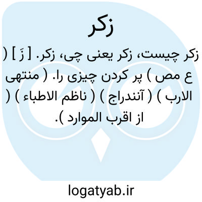 زکر. [ زَ ] ( ع مص ) پر کردن چیزی را. ( منتهی الارب ) ( آنندراج ) ( ناظم الاطباء ) ( از اقرب الموارد ).