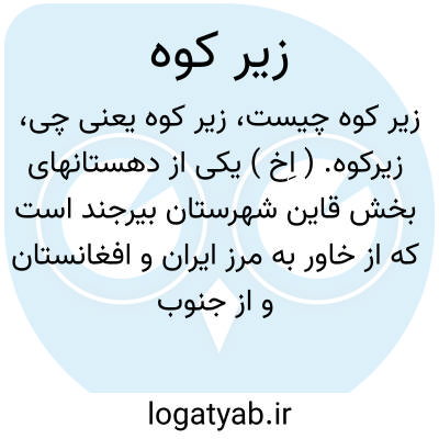 زیرکوه. ( اِخ ) یکی از دهستانهای بخش قاین شهرستان بیرجند است که از خاور به مرز ایران و افغانستان و از جنوب به دهستان طبس مسینا و از باختر به دهستان زهان و از شمال به بخش خواف محدود است و قراء مهم آن بهناباد و آبیز است که نخستین 612 تن و دومین 1369 تن سکنه دارد. ( از فرهنگ جغرافیایی ایران ج 9 ).