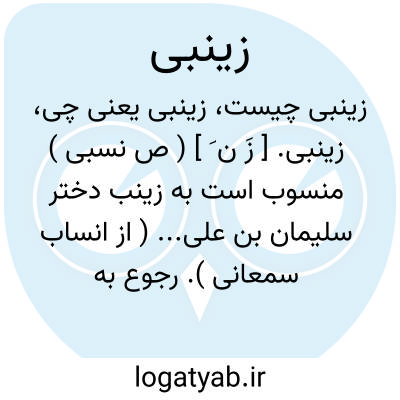 زینبی. [ زَ ن َ ] ( ص نسبی ) منسوب است به زینب دختر سلیمان بن علی... ( از انساب سمعانی ). رجوع به زینب بنت سلیمان و زینبیون شود.