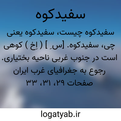 سفیدکوه. [س ِ ] ( اِخ ) کوهی است در جنوب غربی ناحیه بختیاری. رجوع به جغرافیای غرب ایران صفحات 29، 31، 33 شود.