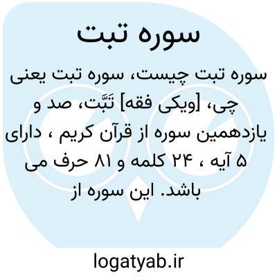 [ویکی فقه] تَبَّت، صد و یازدهمین سوره از قرآن کریم، دارای ۵ آیه، ۲۴ کلمه و ۸۱ حرف می باشد.