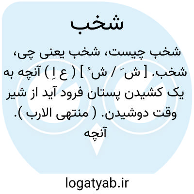 شخب. [ ش َ / ش ُ ] ( ع اِ ) آنچه به یک کشیدن پستان فرود آید از شیر وقت دوشیدن. ( منتهی الارب ). آنچه از شیر هنگام دوشیدن چون ریسمانی بلند ماند و این کلمه فُعل به معنی مفعول باشد چون خبز و قوت. ( از اساس البلاغه ). || در مثل است: شخب فی الاناء و شخب فی الارض؛ یعنی خطا میکند و گاهی صواب. ( منتهی الارب ).