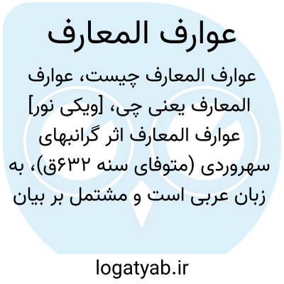 [ویکی نور] عوارف المعارف اثر گرانبهای سهروردی (متوفای سنه 632ق)، به زبان عربی است و مشتمل بر بیان مطالب مهمی پیرامون تصوف می باشد که در قرن هفتم هجری تألیف شده است.