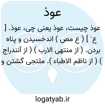 عوذ. [ ع َ وَ ] ( ع اِ ) پناه جای. ( منتهی الارب ) ( از آنندراج ) ( ناظم الاطباء ). ملجاء. ( اقرب الموارد ). || برگ فروریخته از درخت. ( منتهی الارب ) ( آنندراج ) ( ناظم الاطباء ) ( از اقرب الموارد ). || ( ص ) ناکس و فرومایه. ( منتهی الارب ) ( آنندراج ) ( ناظم الاطباء ). رذل و پست از مردم. ( از اقرب الموارد ). || ( اِ ) أفلت منه عوذاً؛ یعنی او را ترسانید و نزد ( منتهی الارب ) ( از اقرب الموارد )، و یا او را بقصد کشتن زدولی نکشت. ( از اقرب الموارد ). || آنچه ازسنگ یا ریشه درخت، که چیزی بر آن بگردد و دور بزند، چون باد بر آن بوزد. ( از اقرب الموارد از لسان ).