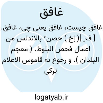 غافق. [ ف ِ ]( اِخ ) حصن ٌ بالاندلس من اعمال فحص البلوط. ( معجم البلدان ). و رجوع به قاموس الاعلام ترکی شود. شهری است در اندلس، جایی با نعمت بسیار و آبادانی و تجارت و هوای معتدل. ( از حدود العالم ). نام شهر مرکزی رستاق اسقفه در اندلس. ( حلل السندسیة ج 1 ص 47 و 205 ). || و غافق ایضاً قصر قرب طرابلس. ذکره البجانی فی رحلته. ( تاج العروس ).