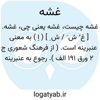 غشه. [ غ ُ ش َ / ش ِ ] ( اِ ) به معنی عنبرینه است. ( از فرهنگ شعوری ج 2 ورق 191 الف ). رجوع به عنبرینه شود.