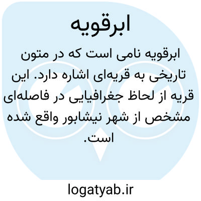 ابرقویه نامی است که در متون تاریخی به قریهای اشاره دارد. این قریه از لحاظ جغرافیایی در فاصلهای مشخص از شهر نیشابور، یکی از مراکز مهم تمدنی و فرهنگی ایران در دوران باستان و قرون اسلامی، واقع شده است. ذکر فاصله شش منزلی نشاندهنده موقعیت مکانی این منطقه نسبت به نیشابور است و اهمیت آن را به عنوان یک نقطه در مسیرهای ارتباطی یا سکونتگاهی آن دوران برجسته میسازد.