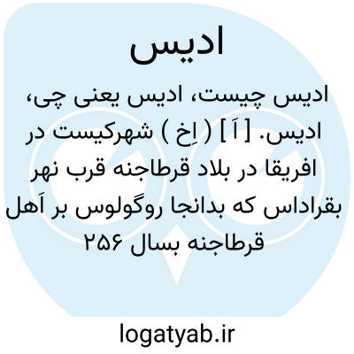 ادیس. [ اَ ] ( اِخ ) شهرکیست در افریقا در بلاد قرطاجنه قرب نهر بقراداس که بدانجا روگولوس بر اَهل قرطاجنه بسال 256 ق. م. غلبه کرد. ( ضمیمه معجم البلدان ).