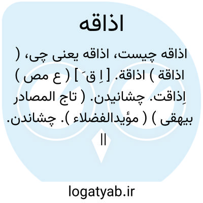 ( اذاقة ) اذاقة. [ اِ ق َ ] ( ع مص ) اِذاقت. چشانیدن. ( تاج المصادر بیهقی ) ( مؤیدالفضلاء ). چشاندن. || به امتحان دادن چیزی را. || مکافات امری کردن: اذاقه اﷲ وبال امره. همگنان را به احاقت مکر و اذاقت غدر خویش منکوب و منحوب گردانید. ( ترجمه تاریخ یمینی ص 206 ). || اذاق زید بعدک کرماً؛ کریم و سخی گردید.