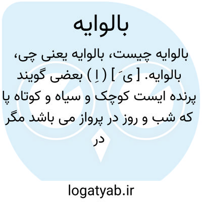 بالوایه. [ ی َ ] ( اِ ) بعضی گویند پرنده ایست کوچک و سیاه و کوتاه پا که شب و روز در پرواز می باشد مگر در هنگام بچه کردن که به سوراخی رود، و اگر بر زمین افتد نتواند برخاست، و آنرا به عربی ابابیل گویند. ( برهان قاطع ) ( آنندراج ). مرغکیست چون گنجشک سیاه و سفید باشد و کوتاه پای بود و چون بر زمین نشیند دشوار تواند برخاست و بدین سبب بیشتر بر دیوار و درخت نشیند. ( صحاح الفرس ) ( از فرهنگ شعوری ج 1 ص 192 ). پرنده ایست که در سقف خانه ها آشیان کند. ( برهان قاطع ). مرغکی است سیاه و سپید چون گنجشک و اگر بر زمین نشیند برنتواند خاست. ( لغت فرس اسدی ). پرستوک باشد و آنرا بالوانه نیز خوانند. ( فرهنگ جهانگیری ). مرغکی است سیاه و سپید چون گنجشک و اگر بر زمین نشیند برنتواند خاستن.کوتاه پای، بر درخت نشیند و بر دیوار که پایهایش پهن بود. ( فرهنگ اسدی ). در نسخه ای از لغت فرس بالوایه ودر نسخه دیگر پالوانه آمده و در برهان جامع بالوایه بر وزن خاگیانه است که شاید مؤلف آن بالوانه را صحیح میدانسته است. ( حاشیه برهان چ معین ). مرغ کوچکی است ابلق رنگ که نامهای دیگرش چلچله و پرستوک است، شاید وجه این باشد که مرغ مذکور همیشه بر بلندی می نشیند و اگر اتفاقاً بخواهد بر زمین نشیند باید بالش را قدری باز نگاهدارد تا در پریدن آسان باشد، پس بالوایه ( بال باز ) است وقتی که برزمین نشیند. بلوایه مخفف آن است. ( فرهنگ نظام ). پرستوک. ابابیل. ( ناظم الاطباء ). در تداول خراسان هم بُلوایَه گویند: