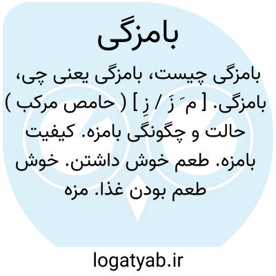 بامزگی. [ م َ زَ / زِ ] ( حامص مرکب ) حالت و چگونگی بامزه. کیفیت بامزه. طعم خوش داشتن. خوش طعم بودن غذا. مزه داشتن. و رجوع به مزه شود. || خوش مزگی. طیبت. خوش طبعی. شوخ بودن. ( یادداشت مؤلف ).