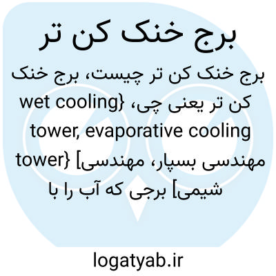 {wet cooling tower, evaporative cooling tower} [مهندسی بسپار، مهندسى شیمى] برجی که آب را با ریزافشانی و تبخیر براثر تماس مستقیم با جریان هوا خنک می کند