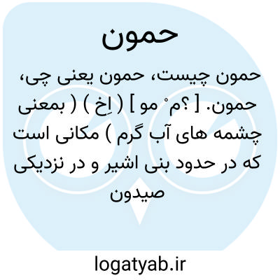 حمون. [ ؟م ْ مو ] ( اِخ ) ( بمعنی چشمه های آب گرم ) مکانی است که در حدود بنی اشیر و در نزدیکی صیدون واقع میباشد. ( یوشع 19:28 ). و بگمان بعضی همان عین حامول میباشد که بمسافت 10 میل به جنوب صور واقع است. ( قاموس کتاب مقدس ).