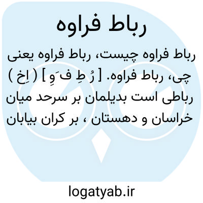 رباط فراوه. [ رُ طِ ف َوِ ] ( اِخ ) رباطی است بدیلمان بر سرحد میان خراسان و دهستان، بر کران بیابان نهاده و ثغر است بر روی غوز [ غز ] و اندر رباط یک چشمه آب است چندانکه تنها خوردن را بسنده آید و ایشان را هیچ کشت و برز نیست و غله از حدود نسا و دهستان آرند. ( از حدود العالم ).