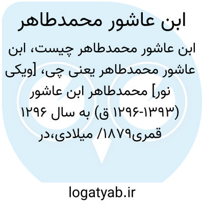 [ویکی نور] محمدطاهر ابن عاشور (1296-1393 ق) به سال 1296 قمری1879/ میلادی،در «مرسی» از نواحی شمالی تونس و در خانواده ای دانشمند و با موقعیت اجتماعی مناسب متولد شد. پدر و مادر وی را محمد طاهر نام نهادند.