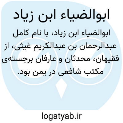[ویکی فقه] اِبْن زیاد، ابوالضیاء عبدالرحمان بن عبدالکریم غیثی (۹۰۰- ۹۷۵ق /۱۴۹۵- ۱۵۶۸م)، فقیه، محدث و عارف شافعی یمانی می باشد.