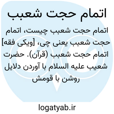 [ویکی فقه] اتمام حجت شعبب (قرآن). حضرت شعیب علیه السلام با آوردن دلایل روشن با قومش اتمام حجت کردند. در این مقاله آیات مرتبط با اتمام حجت حضرت شعیب معرفی می شوند.