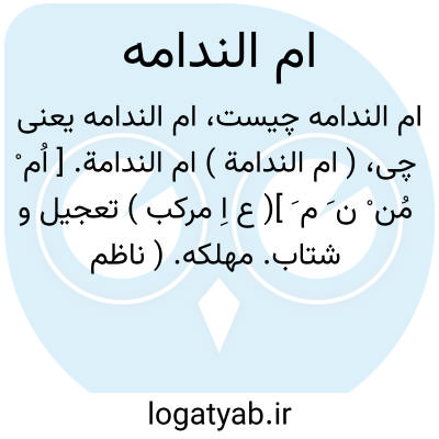 ( ام الندامة ) ام الندامة. [ اُم ْ مُن ْ ن َ م َ ]( ع اِ مرکب ) تعجیل و شتاب. مهلکه. ( ناظم الاطباء ).
