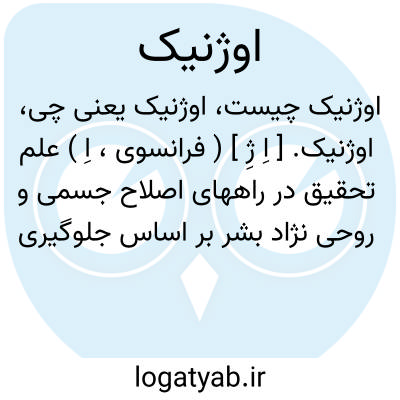 اوژنیک. [ اِ ژِ ] ( فرانسوی، اِ ) علم تحقیق در راههای اصلاح جسمی و روحی نژاد بشر بر اساس جلوگیری از توالد و تناسل افراد نامتناسب و تشویق افراد مناسب به این کار. در بعضی کشورها قوانین خاصی برای عقیم کردن افراد دارای عیب های روانی وضع شده ولی در اجرای این قوانین مشکلات زیادی پیش می آید، ظاهراً امیدبخش ترین راههای اصلاح نژاد، تربیت صحیح و اصلاح محیط است. ( دایرةالمعارف فارسی ).