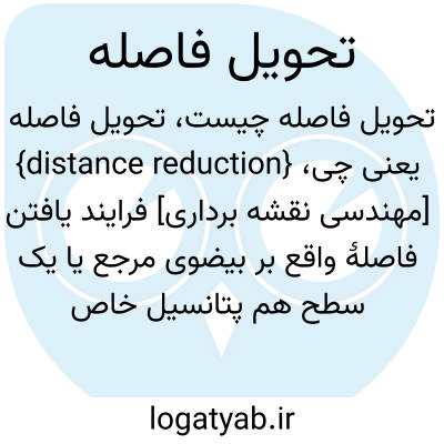 {distance reduction} [مهندسی نقشه برداری] فرایند یافتن فاصلۀ واقع بر بیضوی مرجع یا یک سطح هم پتانسیل خاص که متناظر با فاصلۀ اندازه گیری شده بر روی زمین است