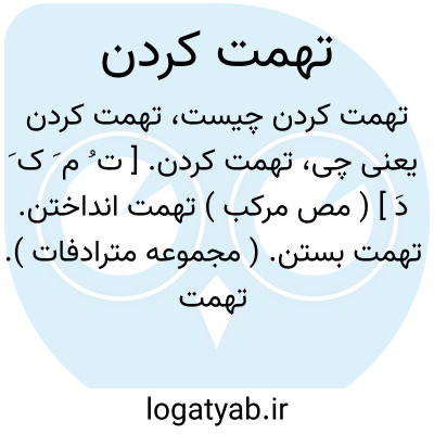 تهمت کردن. [ ت ُ م َ ک َ دَ ] ( مص مرکب ) تهمت انداختن. تهمت بستن. ( مجموعه مترادفات ). تهمت زدن. تهمت نهادن. ( ناظم الاطباء ). متهم کردن. دروغ بستن: