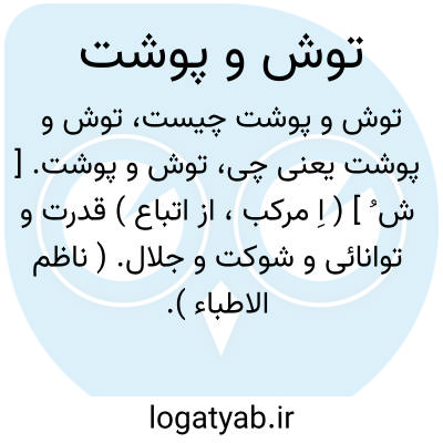توش و پوشت. [ ش ُ ] ( اِ مرکب، از اتباع ) قدرت و توانائی و شوکت و جلال. ( ناظم الاطباء ).