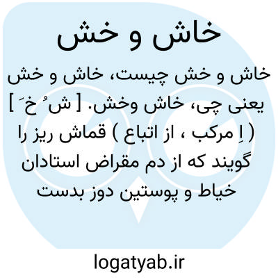 خاش وخش. [ ش ُ خ َ ] ( اِ مرکب، از اتباع ) قماش ریز را گویند که از دم مقراض استادان خیاط و پوستین دوز بدست آید. قماش ریزه بود. ( فرهنگ اسدی ). || چیزی که از دم تیشه درودگران بریزد. ( برهان قاطع ) ( آنندراج ). || آشغال. رجوع به خاشه شود.