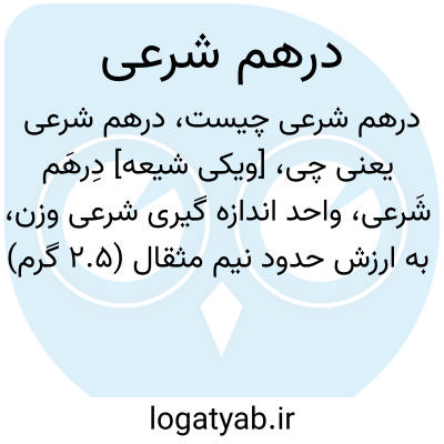 [ویکی شیعه] دِرهَم شَرعی، واحد اندازه گیری شرعی وزن، به ارزش حدود نیم مثقال (۲.۵ گرم) نقره که در موارد مختلفی از جمله پرداخت زکات و کفاره کاربرد دارد.