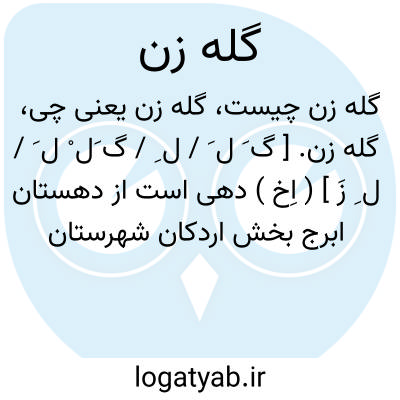 گله زن. [ گ َ ل َ / ل ِ / گ َل ْ ل َ / ل ِ زَ ] ( اِخ ) دهی است از دهستان ابرج بخش اردکان شهرستان شیراز که در 96000گزی خاوراردکان و 2000گزی راه فرعی مایین به تخت جمشید واقع شده است. هوای آن معتدل و سکنه آن 297 تن است. آب آنجا از چشمه و قنات تأمین میشود. محصول آن غلات و برنج و شغل اهالی زراعت و صنایع دستی آنان گلیم بافی و راه آن مالرو است. ( از فرهنگ جغرافیایی ایران ج 7 ).
