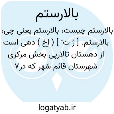بالارستم. [ رُ ت َ ] ( اِخ ) دهی است از دهستان تالارپی بخش مرکزی شهرستان قائم شهر که در7 هزارو پانصدگزی شمال باختر شاهی به بابل در دشت واقع است. ناحیه ای است دارای آب و هوای معتدل مرطوب و10 تن سکنه، آب آن از رودخانه تالار و فاضلاب چشمه جنید و چاه تأمین میشود. محصول عمده آن برنج و کنف و کنجد و پنبه و نیشکر و جو و شغل مردمش زراعت و راهش مالرو است. آبادی استرآبای محله جزء بالارستم محسوب شده و وصل به بالارستم است. پل بزرگی در این محل وجوددارد که بنایی قدیم است. ( از فرهنگ جغرافیایی ایران ج 3 ). این ده به رستم حاجی علی نیز معروف است. و رجوع به ترجمه مازندران و استرآباد رابینو ص 157 شود.