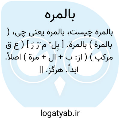( بالمرة ) بالمرة. [ بِل ْ م َرْ رَ ] ( ع ق مرکب ) ( از: ب + ال + مرة ) اصلاً. ابداً. هرگز. || تماماً. یکبارگی. پاک. بیکباره. یک دفعگی. بتمامه. از همه جهت. ( ناظم الاطباء ). و رجوع به مره شود.